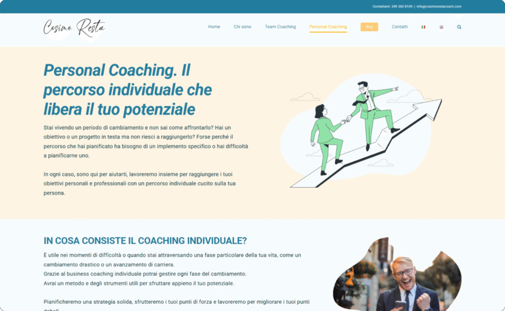Forse è anche per questo che ci siamo trovati subito in sintonia sul piano professionale. Cosimo desiderava un sito web che raccontasse davvero chi è, cosa fa e in che modo può accompagnare le persone attraverso i suoi percorsi personalizzati di coaching.