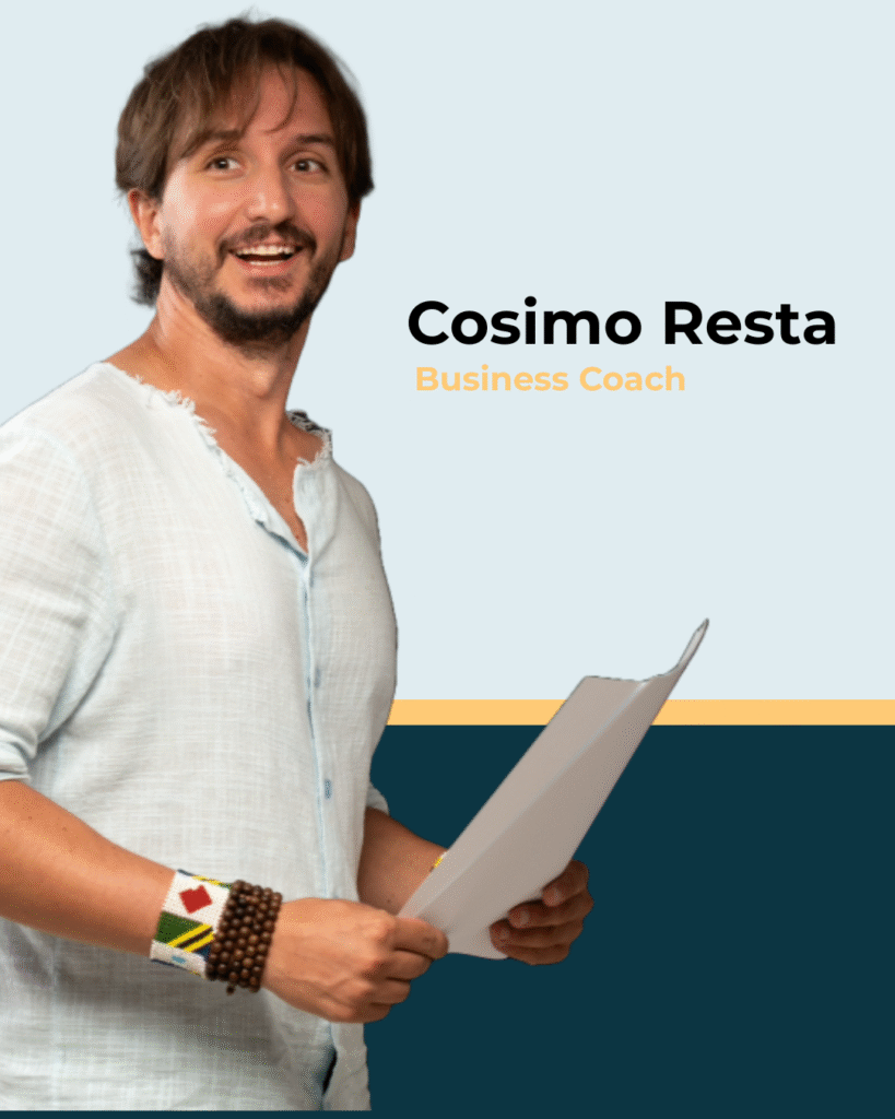 Cosimo Resta è un Business Coach sempre in movimento, con uno spirito gentile e una naturale inclinazione ad aiutare gli altri. Un vero professionista capace di ascoltare, guidare e sostenere chiunque senta il bisogno di crescere, evolvere e ritrovare chiarezza.
